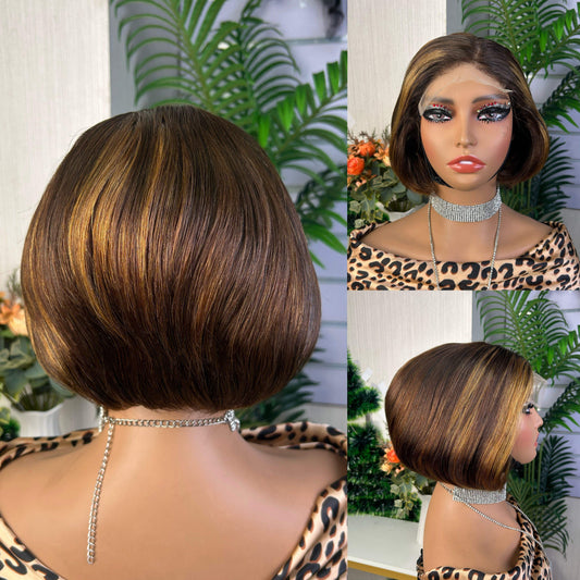 Kim K 2by6 Closure SDD Bob Wig 100% Human Hair Mixed Color Glueless Wig Bone Straight