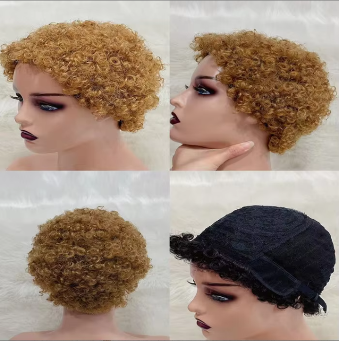 Brazilian Remy Hair Wigs 100% Human Hair Machine-Made Short Cut Afro Wig with Wavy Curly Hair for Black Women